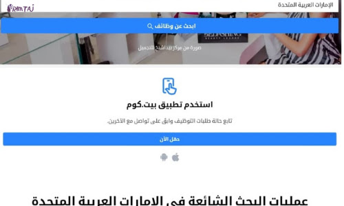يضم هذا الموقع العديد من الوظائف بكافة الأختصاصات للمواطنين والمقيمين والوافدين ويتوفر بالموقع عن مايزيد عم 10.000 الاف وظيفة داخل الأمارات وأكثر من خمسة ألاف وظيفة في دبي و يعتبرموقع بيت دوت كوم هو من أفضل وأشهر المواقع العربية للحصول على فرص عمل في الأمارات العربية والخليج العربي والشرق الأوسط .
